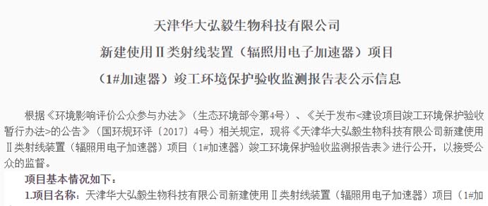 桂林華大生物科技有限公司使用電子加速器輻照項(xiàng)目 竣工環(huán)境保護(hù)驗(yàn)收信息公示